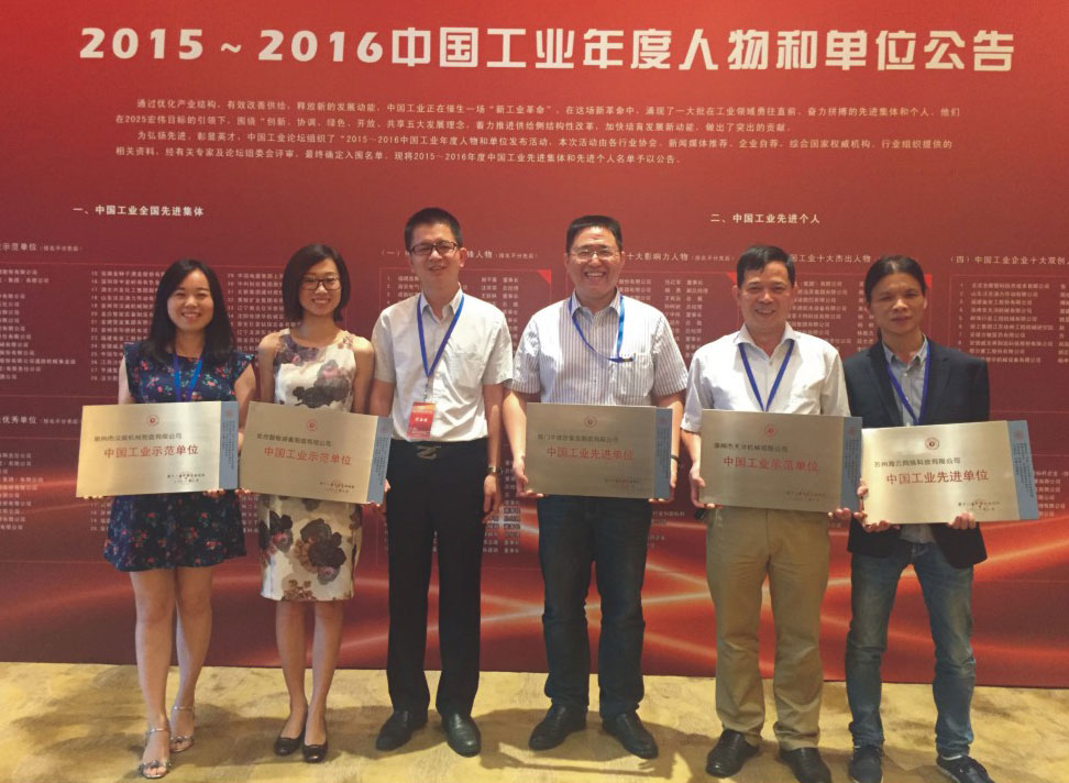 當(dāng)前位置: 首頁 > 公司概況> 領(lǐng)導(dǎo)關(guān)懷2016年6月,在第十二屆中國(guó)工業(yè)論壇上,福建省工業(yè)文化協(xié)會(huì)秘書長(zhǎng)陳良財(cái)(左三)與雷建強(qiáng)總經(jīng)理等相關(guān)獲獎(jiǎng)代表合影