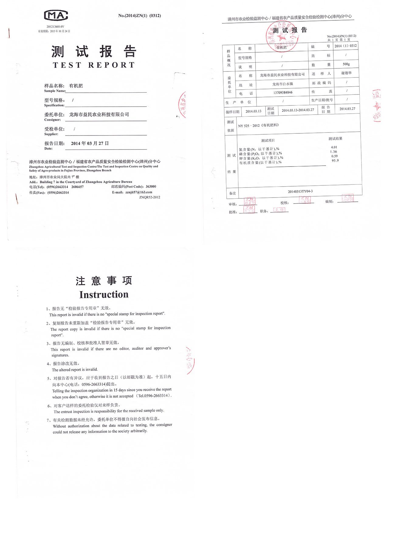 漳州市農(nóng)業(yè)檢驗(yàn)檢測(cè)中心測(cè)試報(bào)告 有機(jī)肥1