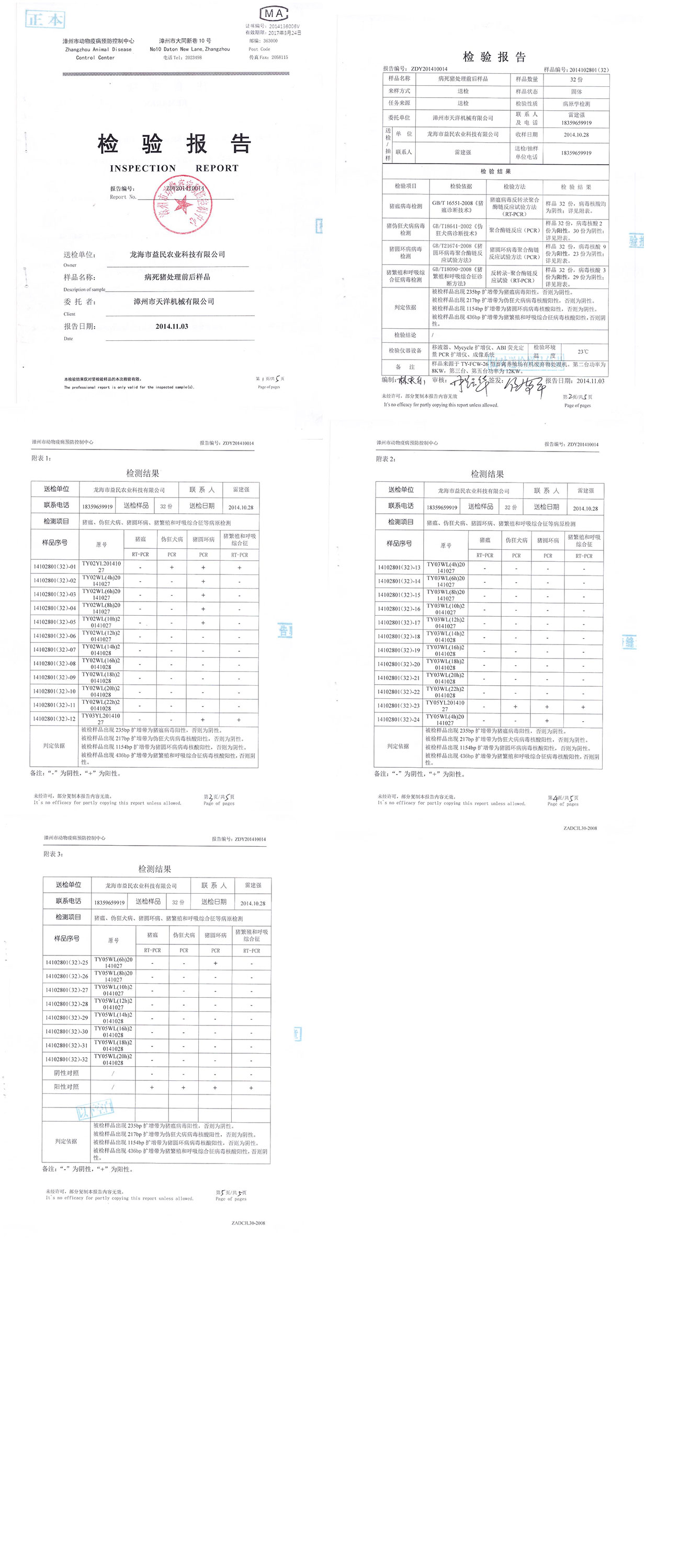 漳州市動(dòng)物疫病預(yù)防控制中心檢驗(yàn)報(bào)告--病死豬處理前后樣品檢驗(yàn)