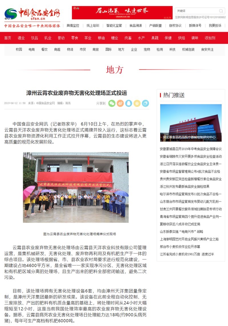 截至目前,漳州天洋集團(tuán)的農(nóng)業(yè)廢棄物無害化處理設(shè)備已遍布全國(guó)大部分省市,近千臺(tái)的設(shè)備日處理農(nóng)業(yè)廢棄物(豬、牛、羊等)達(dá)上千噸,成為我國(guó)農(nóng)業(yè)廢棄物資源化利用和無害化處理行業(yè)的引領(lǐng)者。